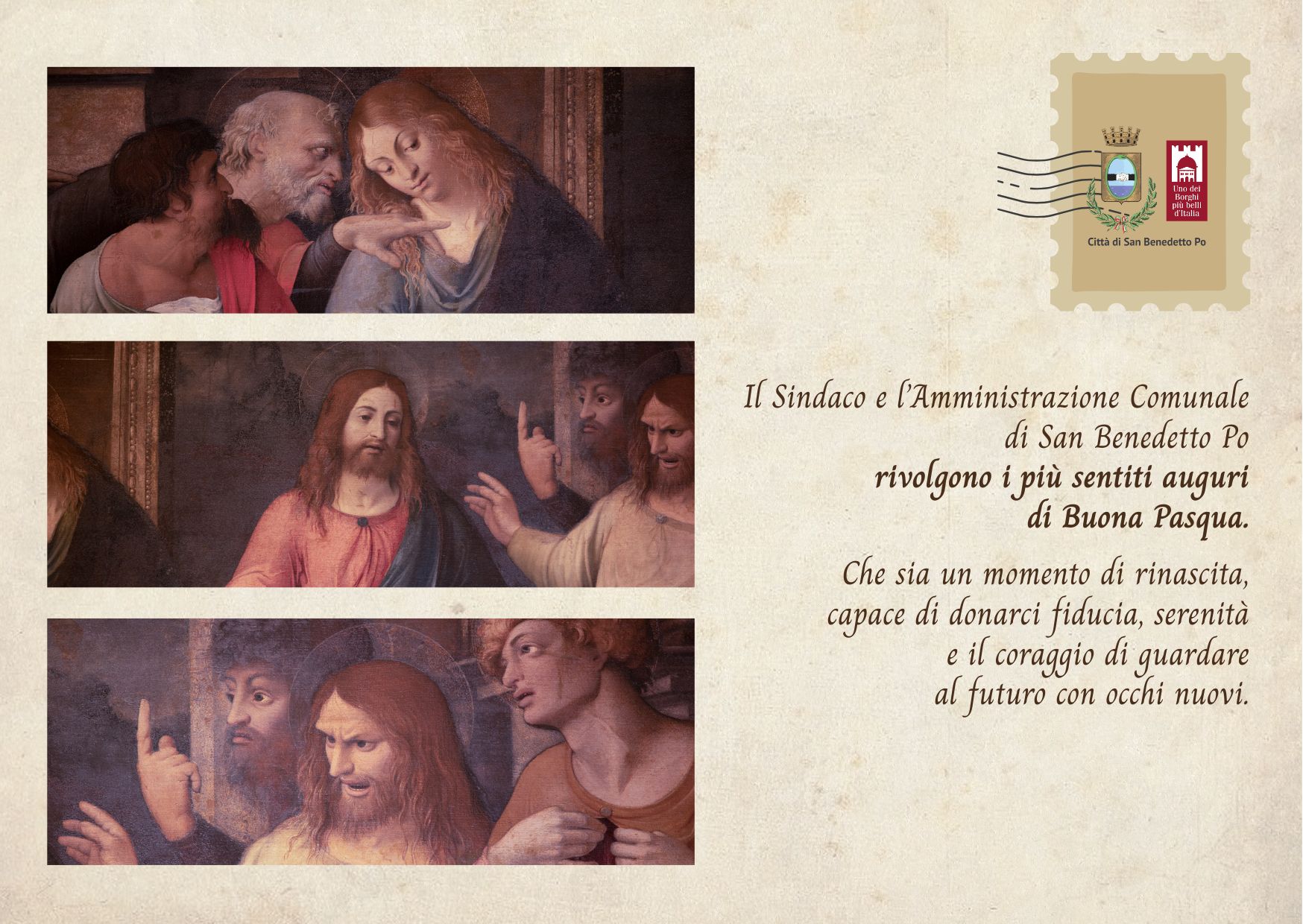 Il Sindaco e l’Amministrazione Comunale di San Benedetto Po rivolgono i più sentiti auguri di Buona Pasqua.