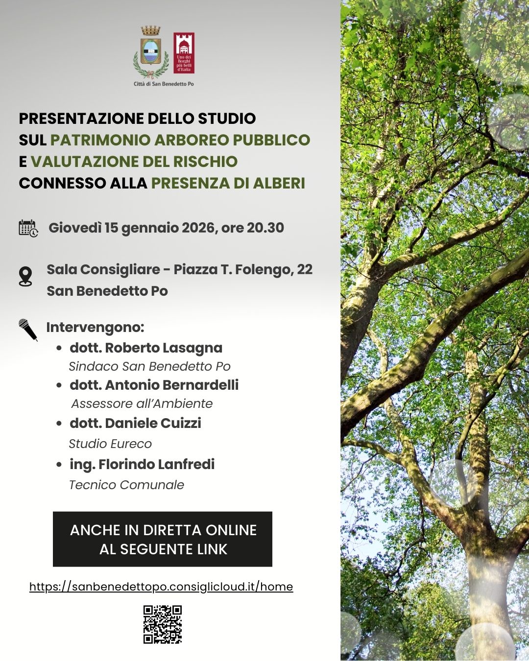 Giovedì 15 gennaio 2026, ore 20.30, presso Sala Consigliare - Piazza T. Folengo, 22 - San Benedetto Po